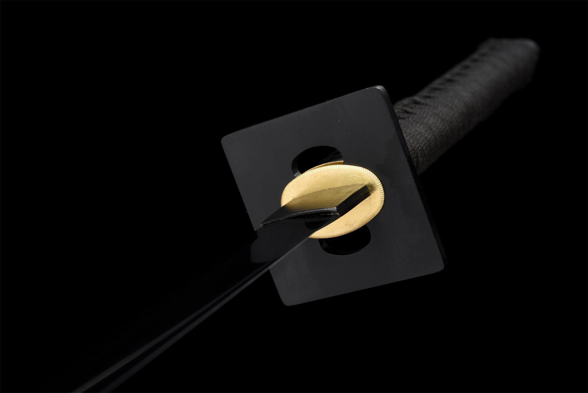 Miecz katana Black Blade zawdzięcza swoją nazwę najbardziej charakterystycznej cechy: głębokiej czerni ostrza, przywodzącej na myśl noc i tajemnicę. Ten ciemny odcień, uzyskany dzięki specjalnej obróbce stali, tradycyjnie symbolizuje dyskrecję i cichą siłę wojownika. W kulturze japońskiej czerń oznacza również dyskretną elegancję i niezachwianą determinację, co sprawia, że broń ta jest symbolem kontrolowanej mocy.