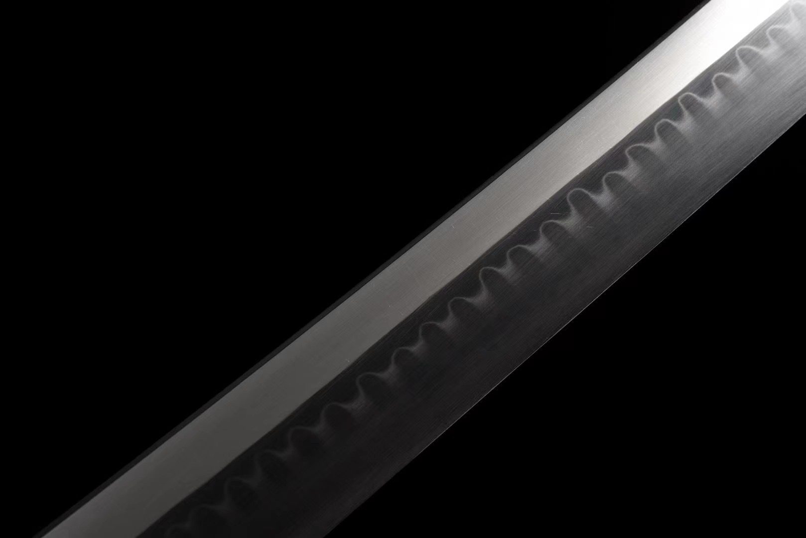- Hamon (刃文): prawdziwy hamon gunome uzyskany dzięki różnicowemu hartowaniu.
