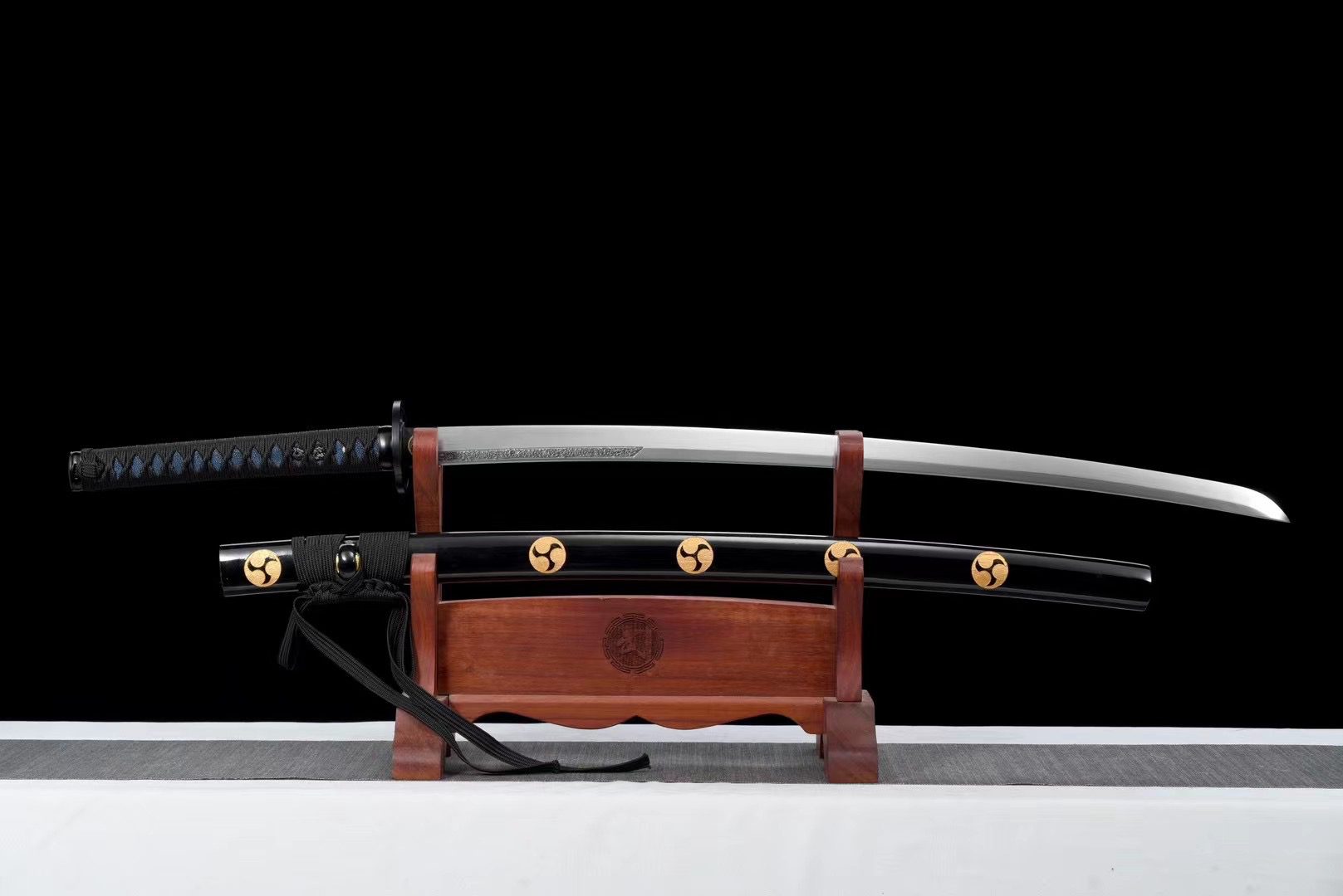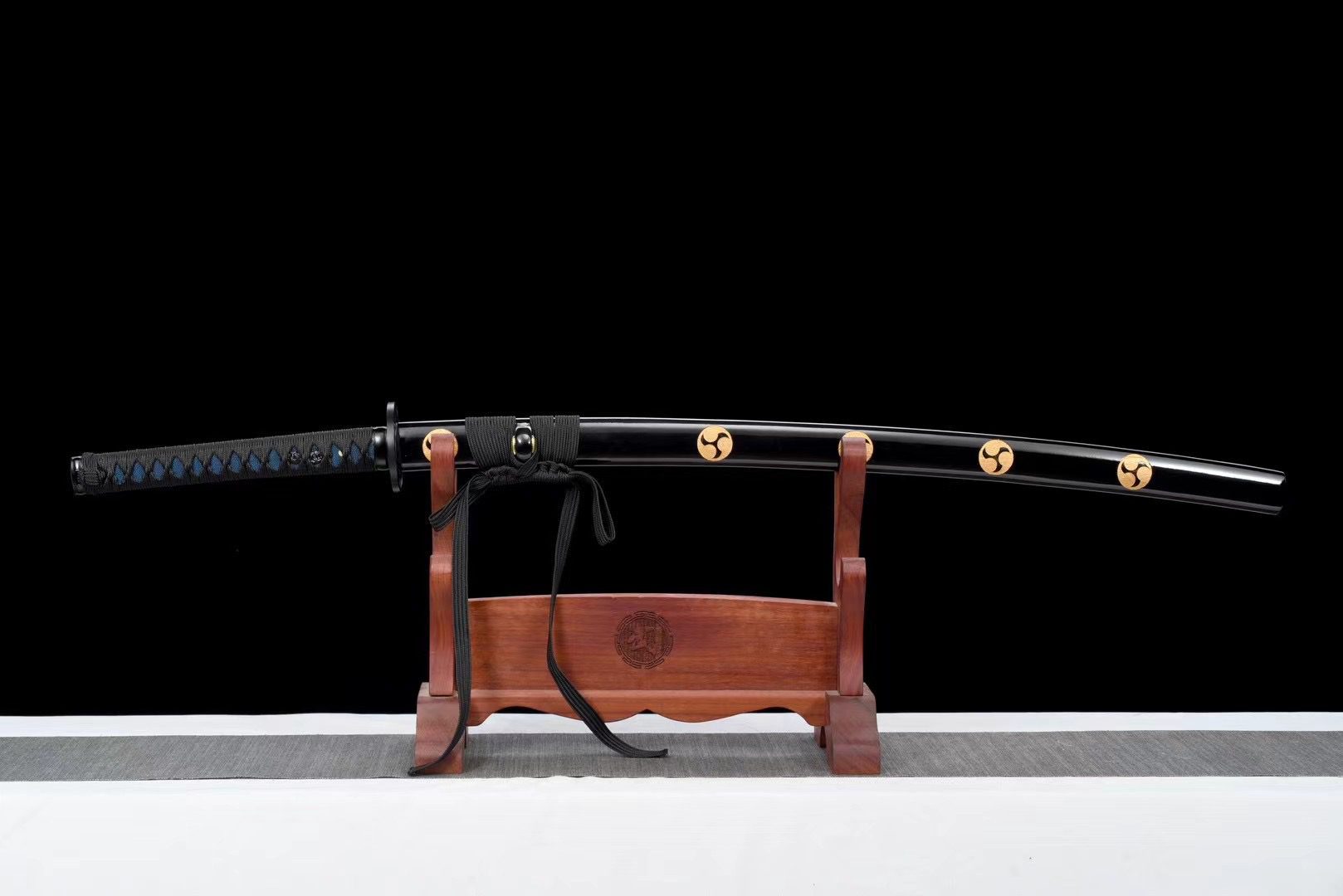 - Pochwą (Saya 鞘): czarna lakierowana drewniana pochwa z czarnym kamonem w kształcie shurikenu, czarne końcówki (Kojiri i Koiguchi).